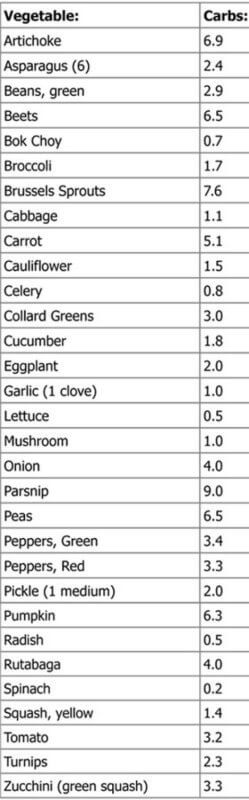 Quick Reference Carb Vegetable List