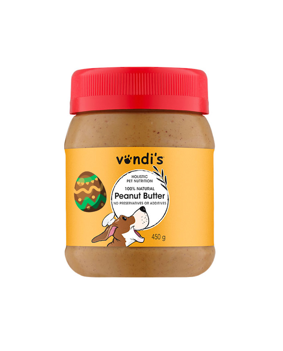 Vondi’s Natural Peanut Butter offers a wholesome, healthy treat specifically formulated for dogs. We craft this 100% natural, organic peanut butter with carefully selected peanuts, ensuring it contains no additives, preservatives, artificial colours, or harmful ingredients.